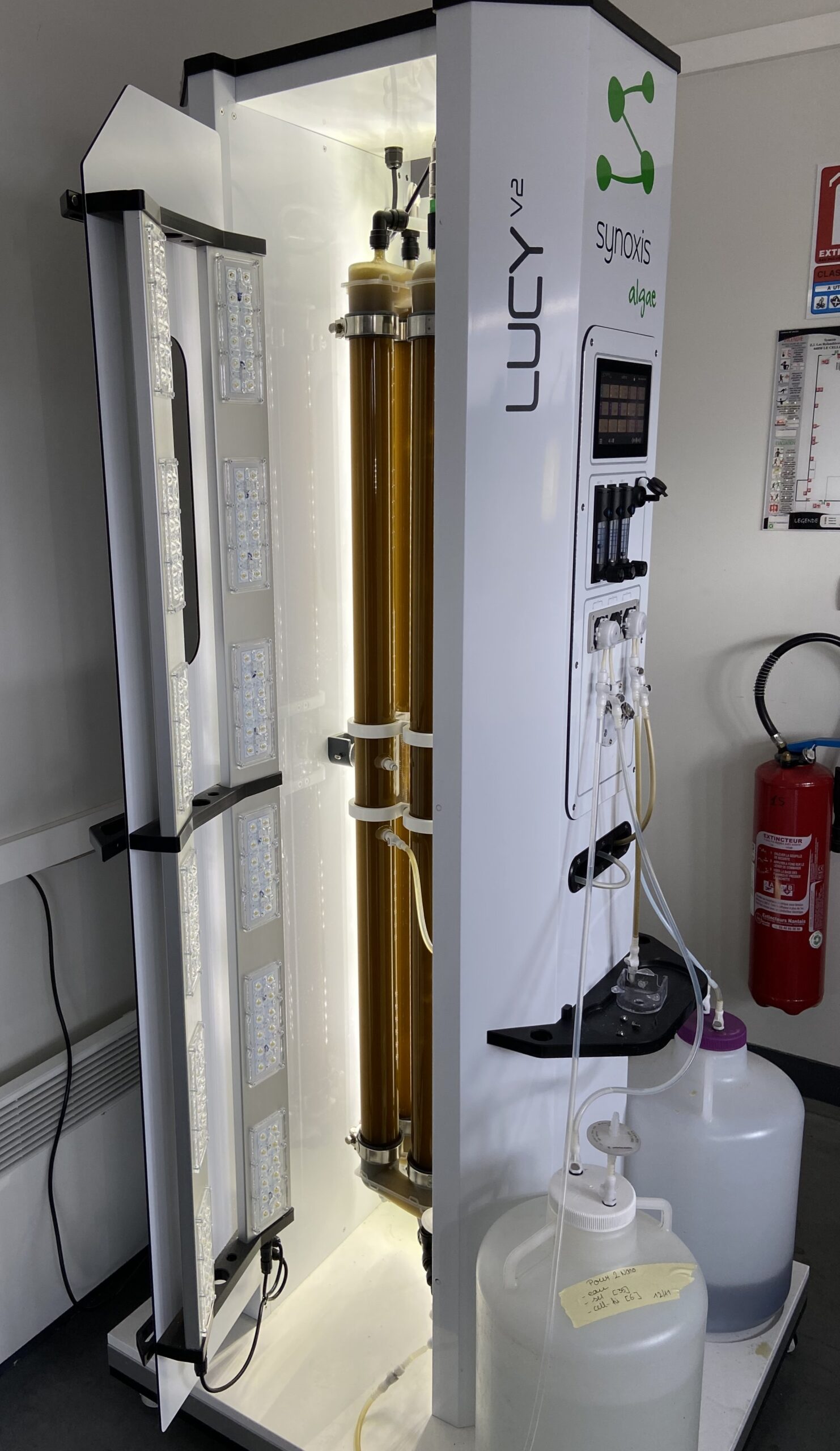 LUCY est le premier photobioréacteur standard de Synoxis algae. Après des années de développement, de nombreux essais technologiques, deux thèses de recherche et un brevet déposé en 2017, notre premier photobioréacteur automatisé dédié à la culture de microalgues, équipé de la technologie SALT, a été officiellement lancé !